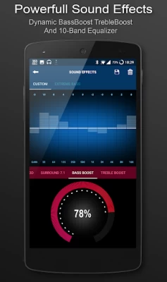 I used the free trial: The app uses light panned delay and heavy reverb to allude to "3D/Surround". However, it echoes snare drums left to right causing a "flam" effect or slight stutter with mid frequency drums/sounds/vocals and the reverb can muddy up instruments with vocals. Fun app and sounds ok with certain songs, but not for every genre. On the Plus side the interface is well put together and the customizable EQ, Bass Boost/Treble Boost and presets are nice. All in all 7/10.