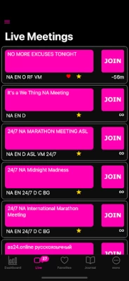perfect place to find a meeting of recovery and all the resources written from and for NA and AA 24/7 i just attended my first NA recovery meeting on here, and it was effortless. very comfortable to use. I also love the journal section where I do my gratitude list every day.