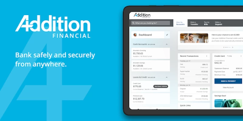 The Addition Financial app does everything I need it to do. It's easy to navigate and easy on the eyes. It could be updated though, to allow switching from account to account without having to log out and back in. I have multiple accounts with Addition and have to log in and out constantly. Other than that inconvenience, it's a real Plus.