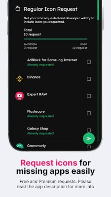 Once again new innovative fancy Icons from smart dev ❤️👍.keep making icon packs 👍 Edit - I’ve been a long-time supporter and really appreciate the quality of your icon packs. I understand that free requests can take time or may be delayed, and that’s completely fine. However, it seems like requests are not being addressed at all across your packs recently. It would be helpful if there was a note about the status of icon requests. Your work is excellent, and I hope to see continued support.
