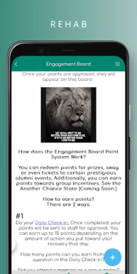 The Another Chance Rehab App is for anyone who wants to take their recovery to the next level. This app is loaded with so many resources and will give you tools and support as you advance in your recovery journey. Earn badges and points as you compete with your friends when you put action into your recovery! The App includes gamification features that encourages engagement and allows you to make recovery challenging, yet fun.