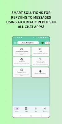 Automatically respond to messages across all chat apps like WhatsApp, Messenger, Telegram, Instagram, SMS, and more β with smart, easy-to-use features.