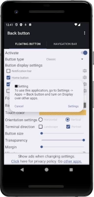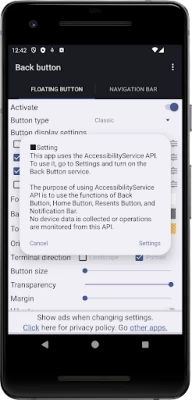 Its good alternate for spoiled back button. There's a problem for my device that the floating button disappears constantly from power saving mode, data saving mode and some unknown reason. Since it allow to set color, it also nice to has more shape.