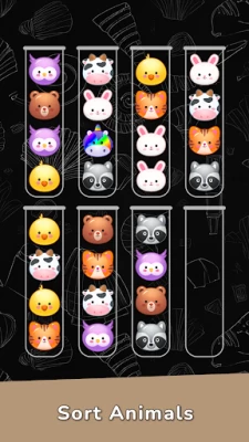 • Sort balls, sea marbles, or animals, filling each tube to solve the puzzle.