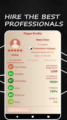 I love this game but you would have to improve on transfers pricing is unfair because a 3 star player's value can ne doubled yet my own 5 star player would only have to ne offered at his minimum value or even below for him to be bought. Please improve on that otherwise i would have given it a 5 star rating. Positions of playes should also e editable in terms of movinf them forward or backward creating a custom formation