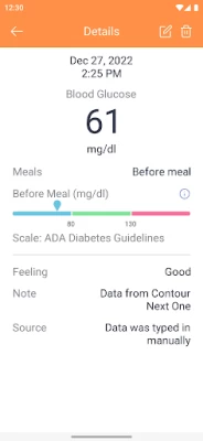 Simple diabetes tracking app. Just had to setup a custom range for my cat. I set 80-120 for before a meal and 80-300 after a meal for a generic range which I received from a vet. Works with alphatrak3 for pets. To access reading press m on device then c to get readings press and hold m and c to get flashing Bluetooth icon in middle of your readings. At this point the device can be added in this app under setting my devices. Thanks for a great app that is simple to use and works!
