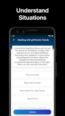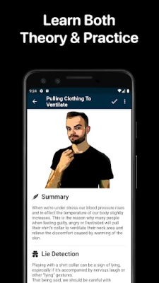 This is a wonderful app for learning the concepts related to reading the posture of a person, from microexpressions all the way to full body posture. The explanations are comprehensive, the tests are nice (could be a bit harder), and the SITUATIONS really help you develop a sense of analysing real-world encounters with body language. Two things that could be worked on: the facial expression examples are a bit creepy here and there. The tests are pretty easy. Thanks for making this awesome app!