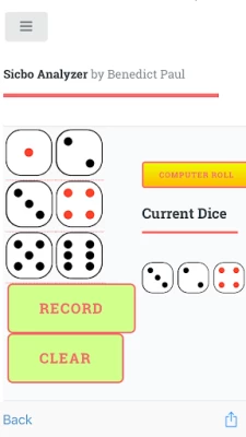 Disclaimer : Gambling remains as it is a game of chance. The software developed is a recording tool for gamers and does not serve as a guide for a sure way of winning at the game of sicbo. The odds at any casino game is always against the player and the developer is not liable for any losses resulting from the use of the software