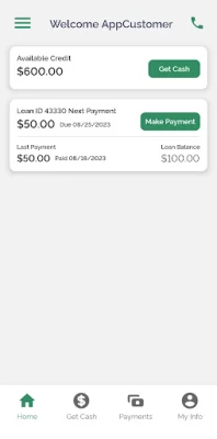 App works great. Making payments and requesting a loan is very simple. Had issues with the app before but now that everything is fixed it's great to use
