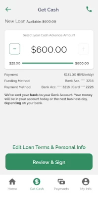 Nice customer service. The app makes it easier to get cash out. Application is hassle free vs other lenders. They do a soft pull which is ideal for people with low or bad credit. Now the bad is sometimes the autopay feature doesn't work. Make sure loan is paid in full because again, autopay doesn't always work. Other than that, if you need a quick cash for emergencies Cash 1 might be good for you. It's worth a try.