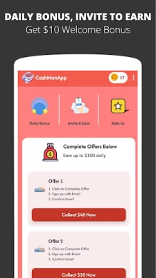 I did one of the offers. It said to collect $10 after I rated this. So, i did; Well,after I clicked on it, it said, "We have no app to handle that request." Quote on quote. Hmm ???!!!???? So, I uninstalled the app. Maybe it meant there was no PayPal or CashApp yet???? I m not sure! ; )