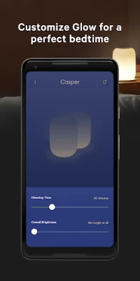 Solid app with a nice design that fits the Casper brand. However, there are a few things I feel should be changed/removed. - The alternating text stating that the glow is perfoming an action, I feel it would be better if it just stated which action is occuring and the time remaining instead of a long sentence saying 'Glow is gradually doing X' etc - The splashscreen is unnecessarily long and should be reduced or removed entirely. Animation is great but the logo is overkill in terms of length
