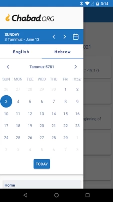 I am able to get right to reading for the prescribed day. I just discovered I can find a calendar by tapping on the dates. I may uninstall my other calendar now that I can get it all in on chabad place.