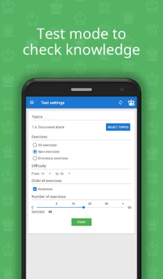 Good app that uses repetition of positions and problems to really consolidate the ideas in the memory. I try to do about 50 exercises a day and now have found similar positions in games I play. I'm not liking the American accented voice in the animations. It goes too fast for me. I've tried changing it in the app settings but no Joy so far.