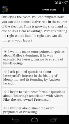 This is single handedly one of the best choose your own adventure games I've seen. Part 1 is what got me started in the genre. I love this game and can't wait for part 3...if that ever happens. Lol PS. I would love a rundown on the vampire goverment system, like diagram? Do you guys have a thing somewhere I can view it?