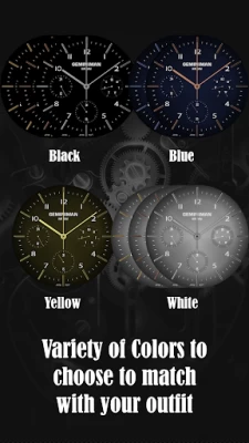 The watchface features 3 mini-dials: date, day of the week and time in 24H... You can change the watchface color to match your outfit...