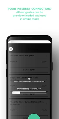 I paid for and installed this app to get an audio guide to the Palacio de Pena in Portugal. However on arrival, when I pressed Start Tour, I discovered that this guide had still to be downloaded. This was impossible over the roaming data service. Hence the app was unusable. Surely when I registered the relevant audio guides could have been pre- download and used of line. Not at all impressed.