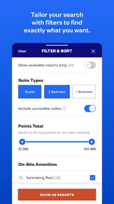 I love the search options! One of my favorite features is being able to search by destination type. I'm always looking for beach getaways, and the app makes it so easy to find resorts that fit exactly what l'm looking for. It's such a helpful tool. This makes it easier to plan my next trip!