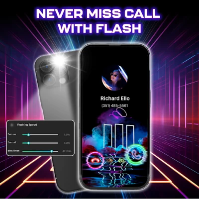 Blinking call flashlight with vibration to remind for all incoming calls🌟 Color Phone Call Screen Theme help you answer any call quickly and avoid missing any important incoming calls or your phone call theme is on silent mode or in a dark environment with flash alert on incoming calls.