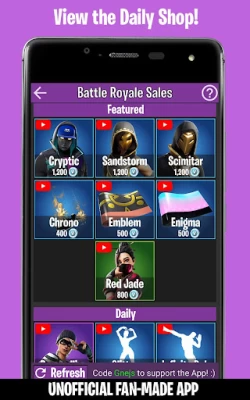This is an amazing companion mainly for STW but has some great BR features as well! The ads are non-intrusive and can even be disabled for a low price! If it's a bad time, just postpone it! There is some minimal features locked behind the supporter status, but I wouldn't mind paying for them if I could afford to support the developer. Thank you for this amazing app!