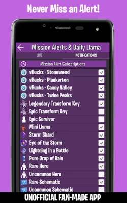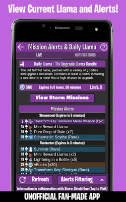 Best app ever for those who play save the world. There's an ad free version if you pay a couple more dollars in my opinion it's well worth it and you get notifications as soon as Viva missions or whatever filter settings you have pop-up. The app is flawless always works perfectly so Props to the people who run the app