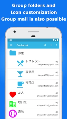 ● Multiple groups can be grouped together using the group folder function. (You can also send emails and SMS to all group members in the group folder)