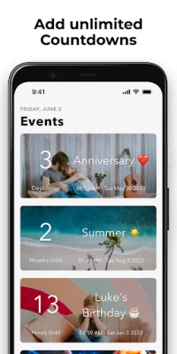 I love that it lists all your events and their countdowns in chronological order. The interface is also very esthetically pleasing!