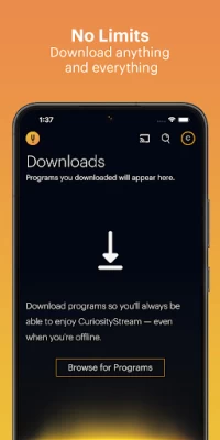I love the content on Curiosity Stream especially for the price. The problem is I've found that the downloads feature is pretty poor. I will click "Download" on a video and if I leave the app, the download will seemingly stop. The worst part is, when you restart the download, it starts over. It does not save the content it supposedly already downloaded. This creates an infinite loop making downloads impossible unless you leave the app open during the whole process, which can be a while.
