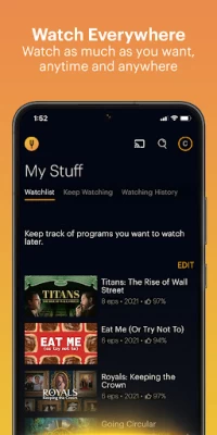 This app can be so frustrating to use for the most basic of functionality. Simply trying to re-watch a show will have you pulling out your hair. It's near impossible to do so. The app also forces portrait mode when browsing. Like I said, the most basic functionality you expect in a streaming app, they haven't included it in this one. The shows and content available is awesome though!