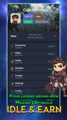 it's what it says on the tin. A 100% idle game with a fantasy rpg skin. Web game turned app, with some clunky navigation and occasional loading issues. The Wiki could use some help, linking crafting components to recipes, and showing source locations for items