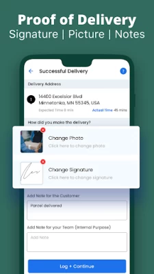 You can take electronic proof of delivery. For instance, you can collect signatures, capture photos, and write notes of each successful delivery you make.