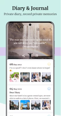 Just paid for this app. I rarely do, but this one deserves it. Even with ads you get a simple and powerful diary - with a subtle yet beautiful theme. And all functions needed are included - import, export, backup. Even automatic. Write your thoughts, memos - add a feeling, or image. Browse the records by day or sorted as a list. Did i mention you can export in pdf, including pictures? And share your content with a friend? Just don't forget to set a password or fingerprint for safekeeping.