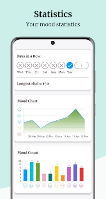 I don't like the mood tracker feature on this diary. When you're writing an entry for the day, you can click on one of 10 different emojis to show how you're feeling. But when you look at your statistics, there are only 5 moods on your graph. I want something with more accuracy in this area, so I'm uninstalling this app and trying out some other ones.