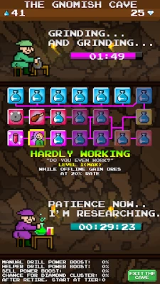 its a pretty good game. plenty to do just to get to 1st retirement, but its acceptable time length. not sure when autotap will become available, or if Dev's have put icon in game, but not activated it yet. plus,will be interesting to see what happens when i give money to goblin to open new caves! like i said, plenty to do. if autotap was included or available earlier, game would be 5 stars. thanks Dev!!😀😀😀