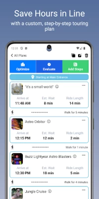 This app basically does what is expected of it. A lot of complaints about wait times aren't predictable. In 3 days 5 rides went down for maintenance so 30 min turned into hour. This is not the apps fault. I did find the Disney times to be more accurate however. I assumed unlocking the app would give access to more/better plans and that is not the case. Unfortunaly the app was not worth the price for my disneyland trip.