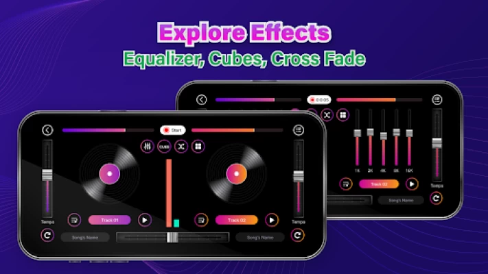 Nice app but I don't see how you can mix like other apps whereby you can press for you to mix two songs by the cross fader