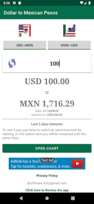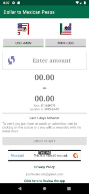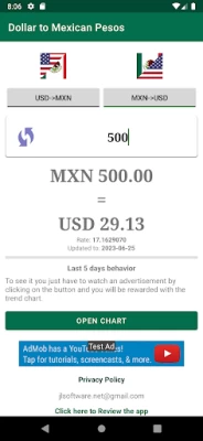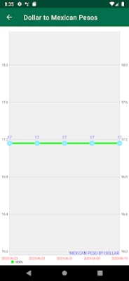 The application allows you to see a 5 day history of the trend of the Mexican Peso versus the Dollar, it is ideal for tourists or for business travel.