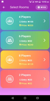 1. Select Bet Category - 2 players, 4 players, 6 players or 8 players.