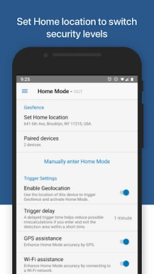 Nice app, could be slicker and faster but works quite well. I wish the back button (from settings) would bring me back to the default screen (with all the cams) before it tries to exit the app. Found a bug: The GeoFence option to activate when connecting to WiFi doesn't save its setting and therefor doesn't work, if it did it would be more accurate than the geo-location.