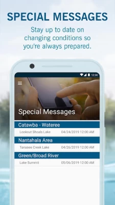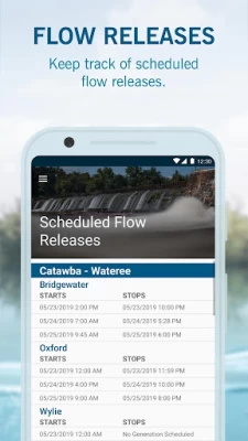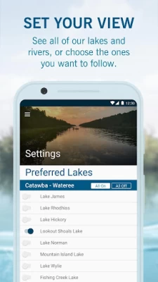 App does not work on Android. Lists of lakes and rivers do not show up to choose which you want to get notifications.