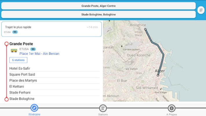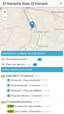 The idea is great, but I would like to add a couple of suggestions. First, we cannot zoom in or out of the map, which makes it difficult to see routes and stops. Second, we would highly appreciate it if you guys add additional information regarding the surrounding wilayas (Tipaza, Blida...). Waiting for the next update!