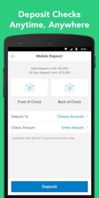 I use this app frequently. However, I'm never able to use the mobile chrck deposit feature as the app always freezes after taking a photo of the front side of my check. There was only one occurrence where I was able to mobile deposit a check and that was a few years ago. Ever since, all my attempts are unsuccessful; the app freezes. My app is up-to-date and the OS on my android is as well.