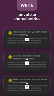 Update: Used it a few times with one of my partners whom also likes to WRITE! Simple, clean, fair limits (one entry per day for the free version). Took us a little bit to figure out how to share w/each other but otherwise intuitive! It's here! Was super excited this app was being developed by an amazing creator. Finally a clean and simple app that I'll actually use with all my partners. Your work is great and thank you for the obedience app as well. It's been foundational in my life for years.