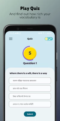 Test your language proficiency with fun and engaging quizzes. Whether you're a beginner or an advanced learner, our quizzes cater to learners of all levels and help reinforce your understanding of English and Bangla vocabulary.
