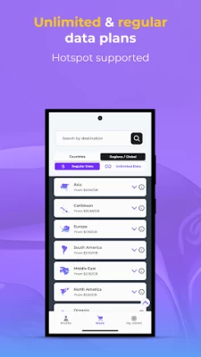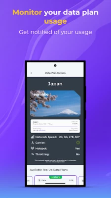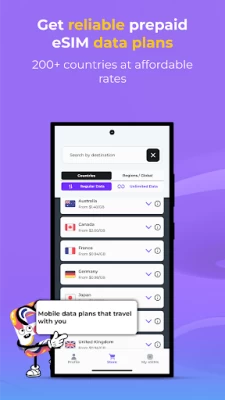 • Flexibility to choose between regular and unlimited prepaid eSIM data plans