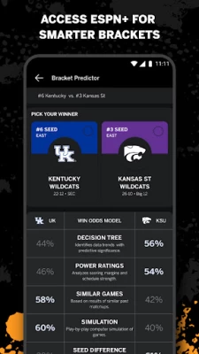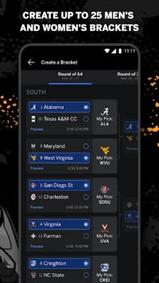 Poor layout, buggy. Picking the entire bracket in the app wasn't user friendly at all. When I move from round to round, the view gets reset to the top of the bracket - very annoying. And half the time, the My Brackets and Bracketcast tabs don't display the proper content, and the app has to be restarted. Bottom line, filling out your bracket is best done on a computer.