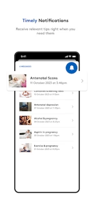 During your pregnancy, you will receive content relevant to your stage of pregnancy. After your baby's birth, you will continue to receive age-relevant content during your child’s development up to 19 years.
