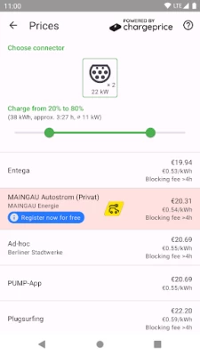 Best app for comparing prices. Open source map data, open source charging station data. No ads. Very responsive developer. 👍 Update: initially I wrote this feedback in. 2021, but it still is true 2023. Keep up this excellent work!