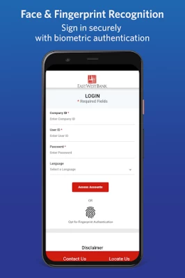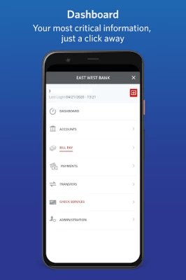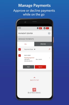 The East West Bank bBPremier app combines the power of businessBridge®Essentials and businessBridge®Premier with the convenience of your mobile device.1 With this app, you can view your accounts, transactions, and notifications when you want, and where you want. Users can also make internal transfers, approve ACH and wire payments2, find bank locations, and more! Enjoy the convenience of accessing your bank information on the go.