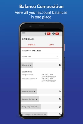 • Review activity and balances for checking, savings, money market, CD, and commercial loan accounts3